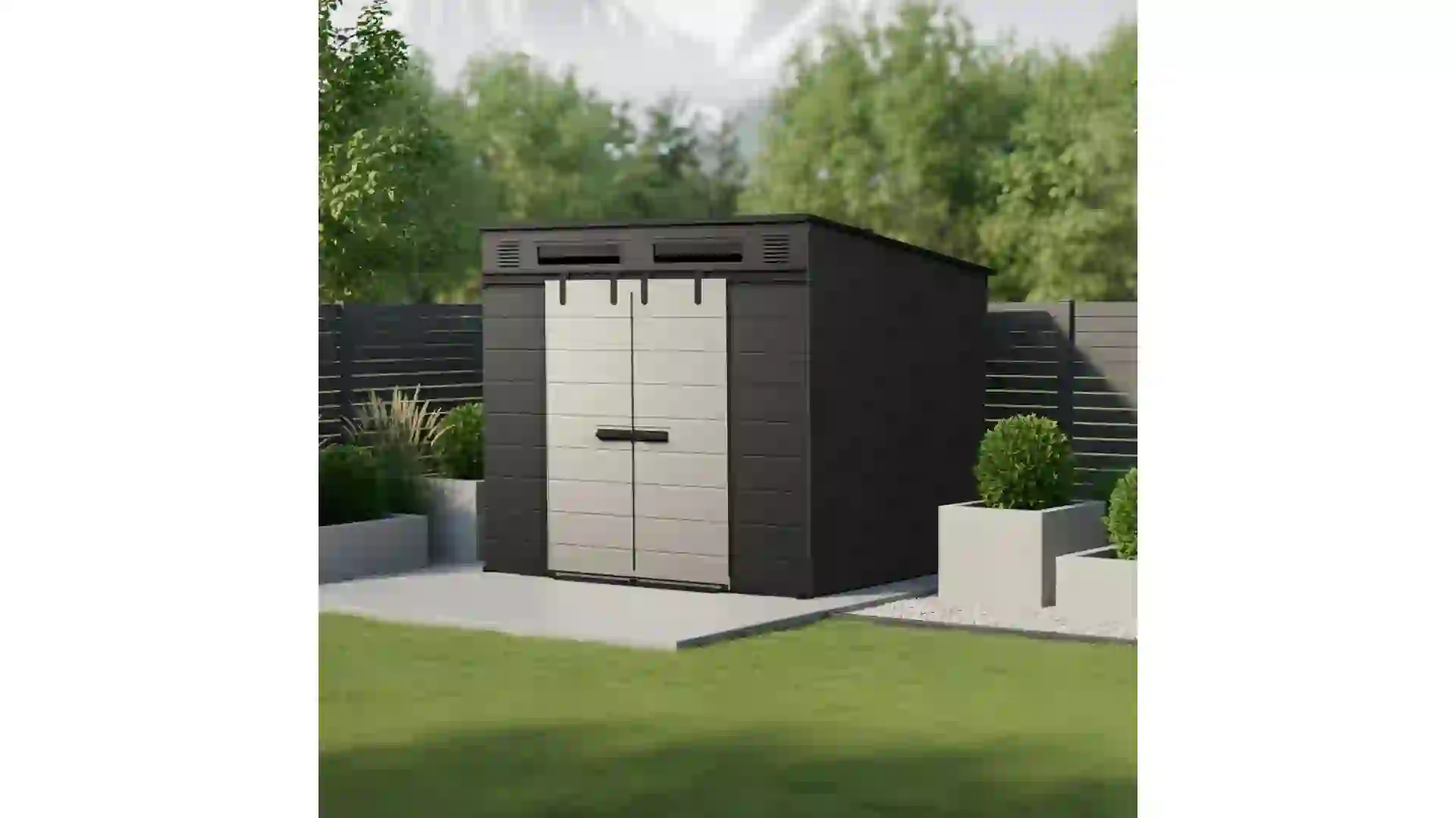 Whether you’re storing bikes, lawn care tools or yard games, this versatile shed provides protection no matter the weather. Suncast Modernist Dual Barn Door Storage Shed It has barn-style doors that create easy access to items stored inside, and it comes with four tool hooks to help manage organization. Transom windows at the front provide additional lighting for greater visibility.