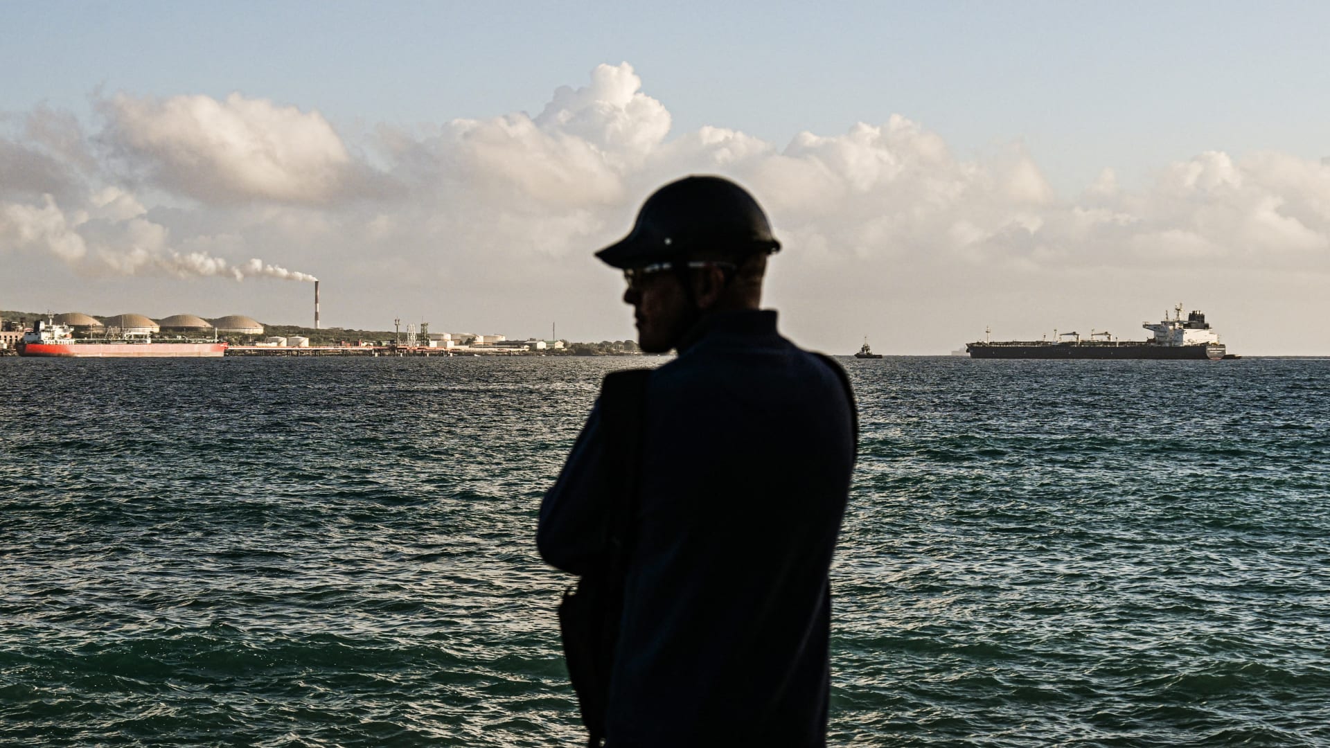 A man stands as a tugboat directs the Russian oil tanker Anatoly Kolodkin at the oil terminal in the port of Matanzas in northwestern Cuba on March 31, 2026.